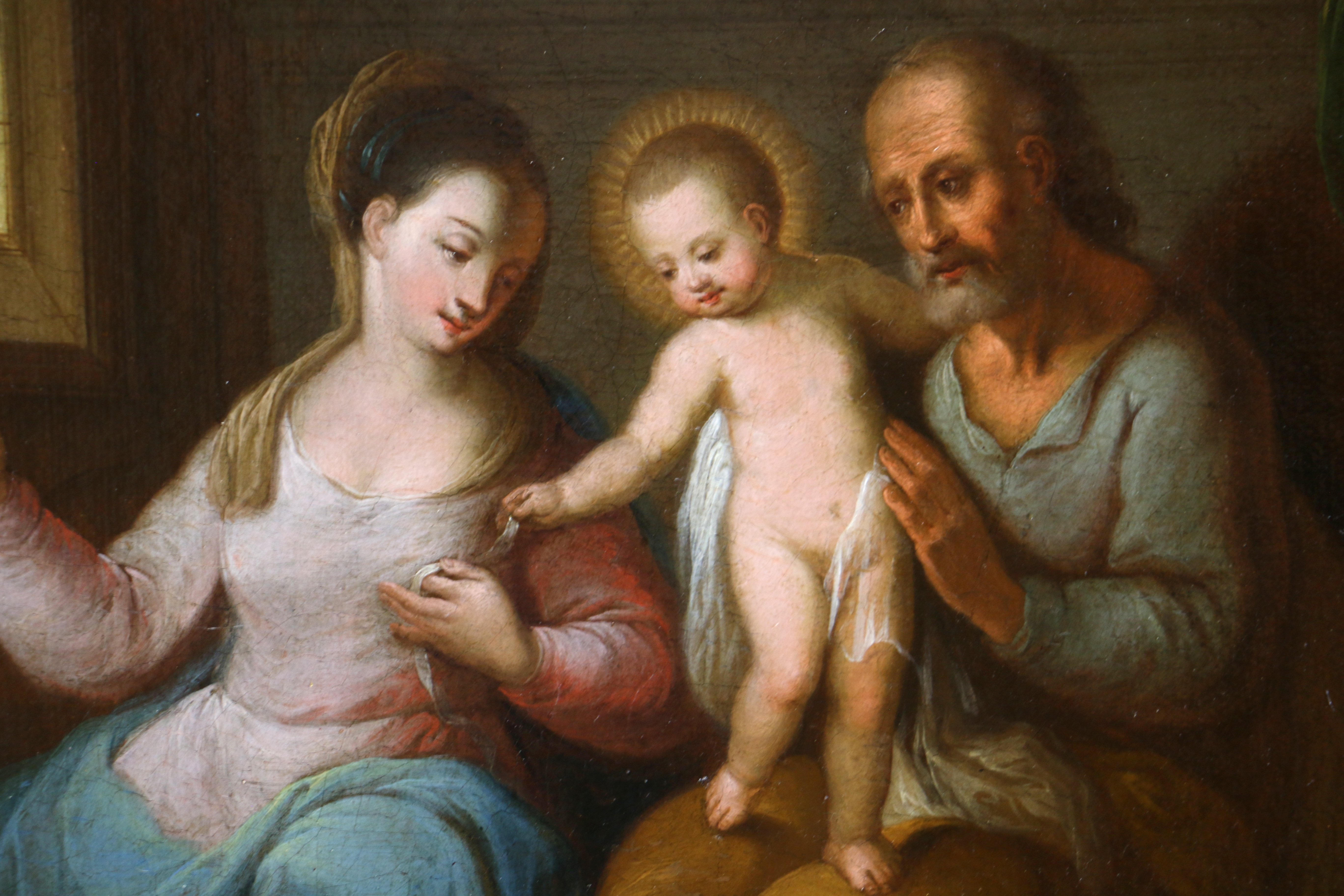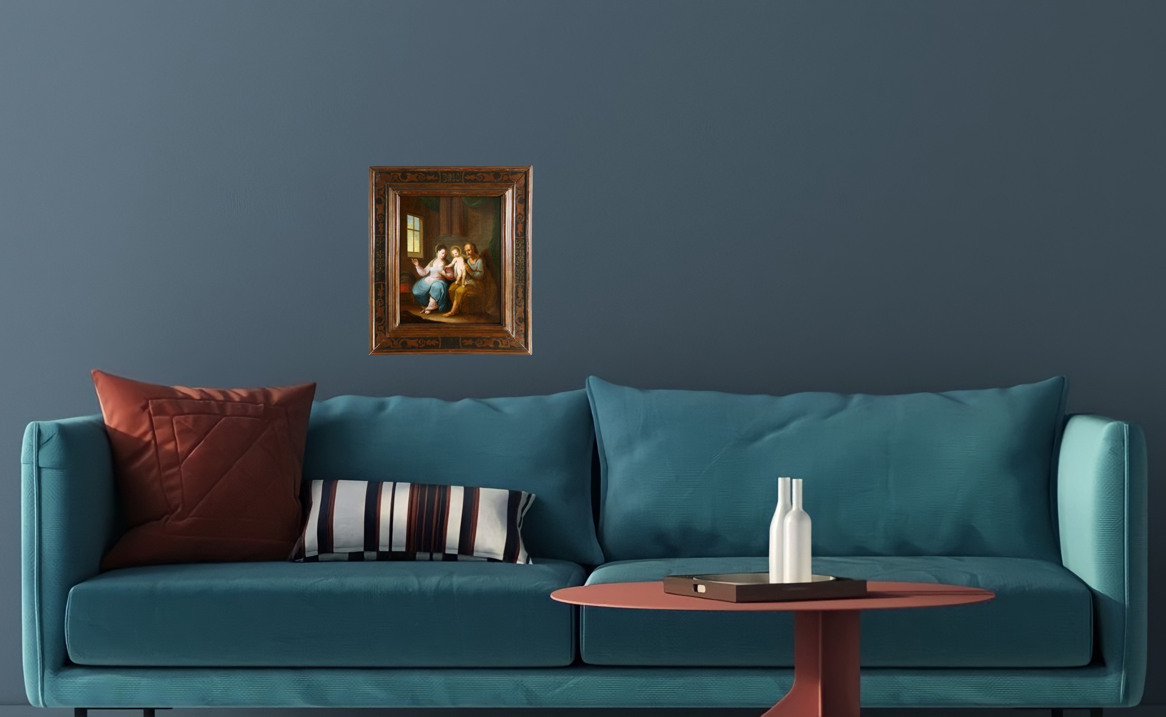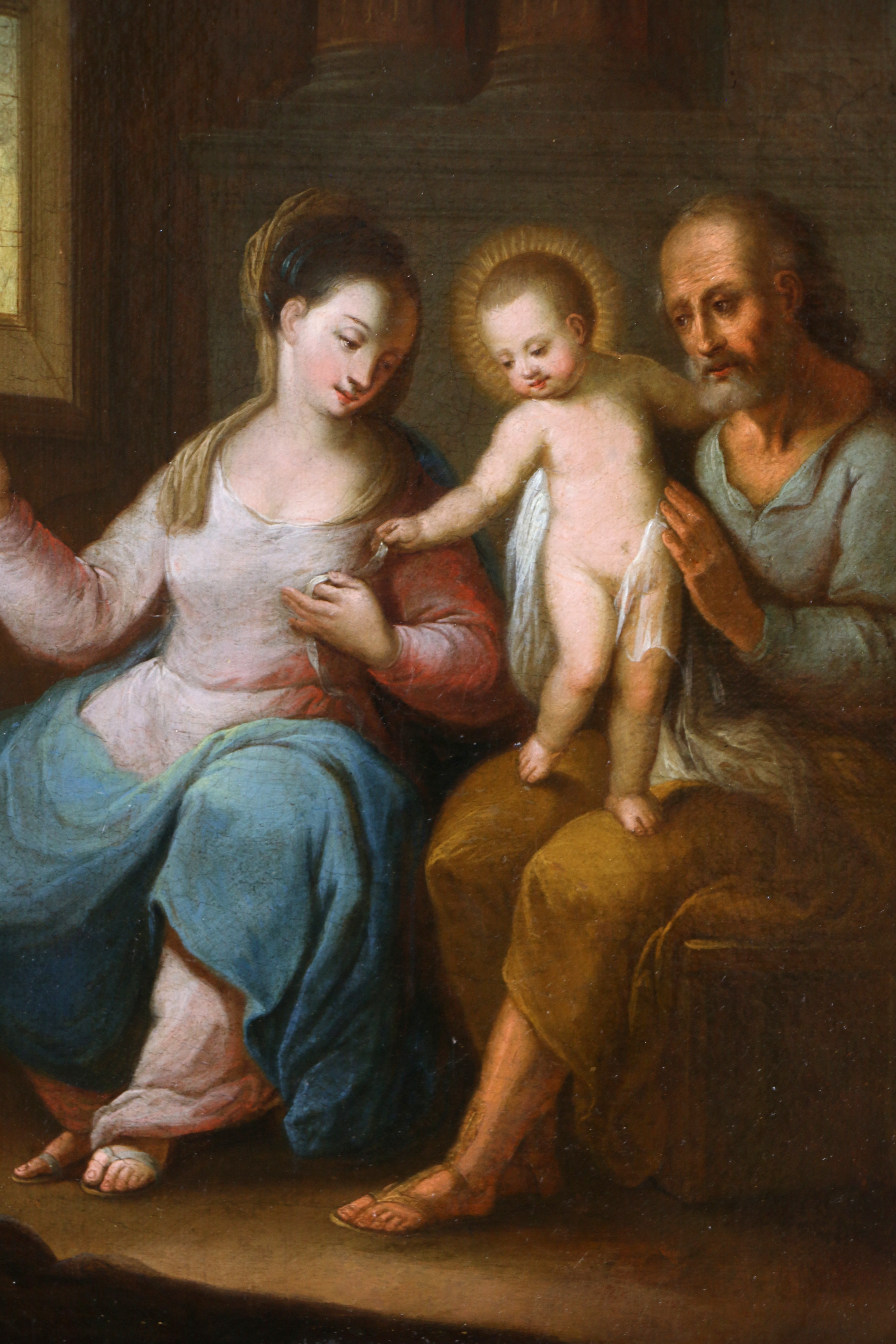 Ecole du nord de l’Italie vers 1650/70. La Sainte Famille dans un intérieur.